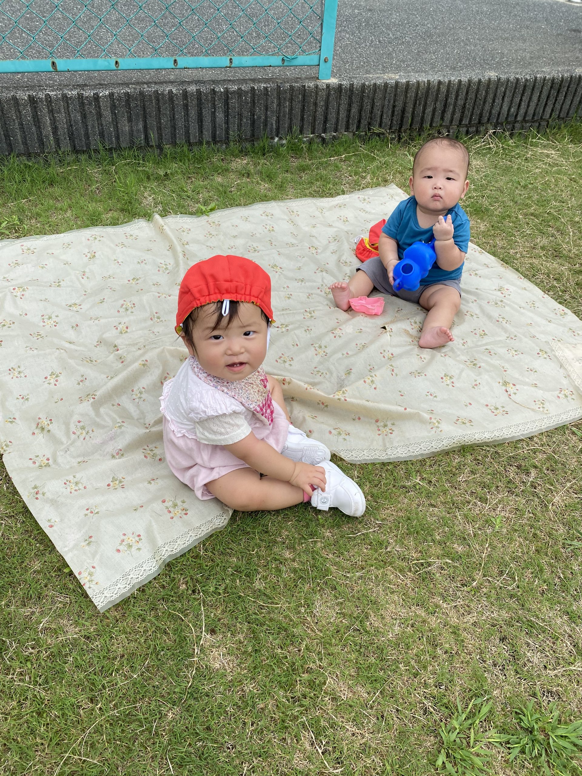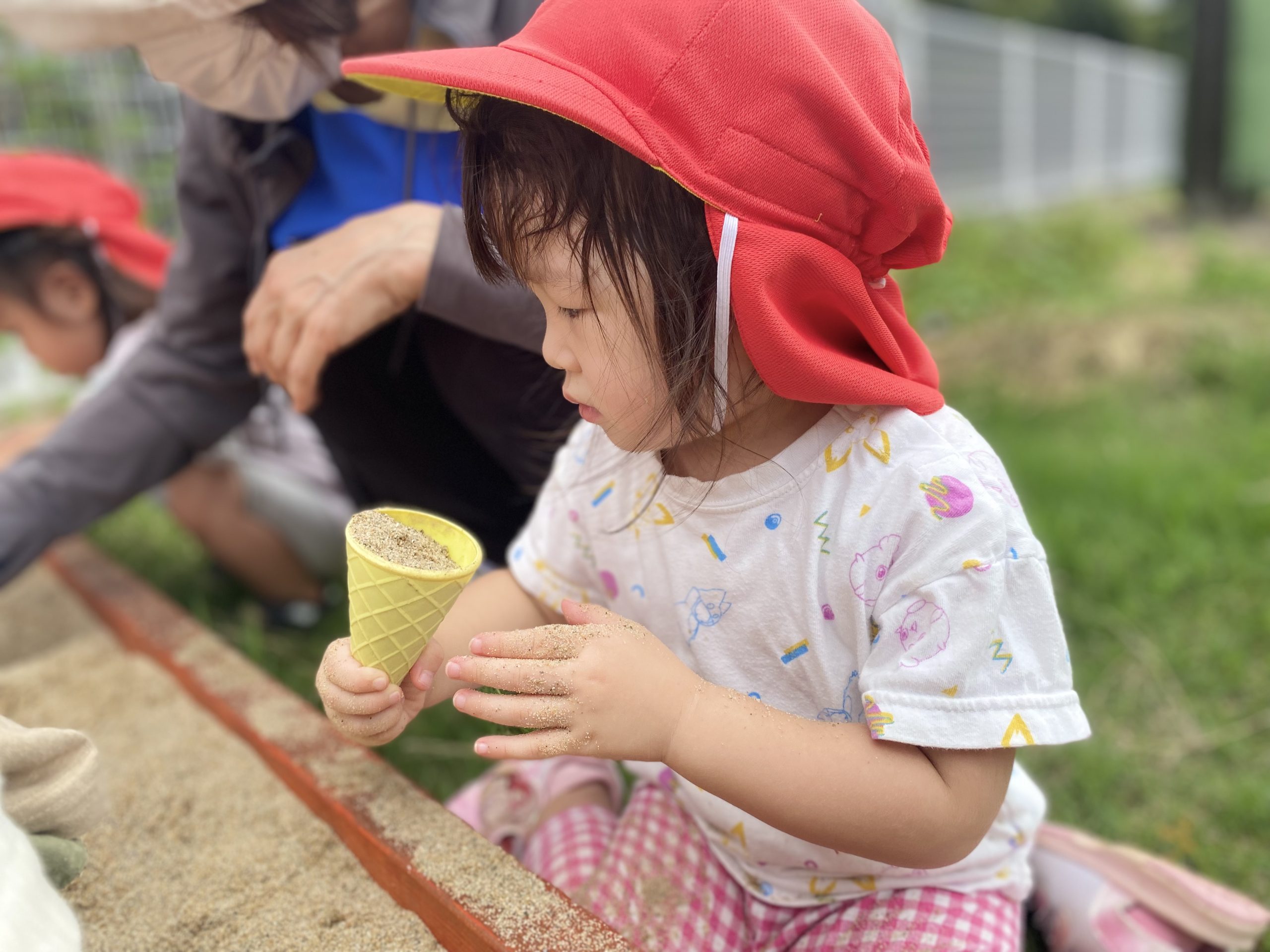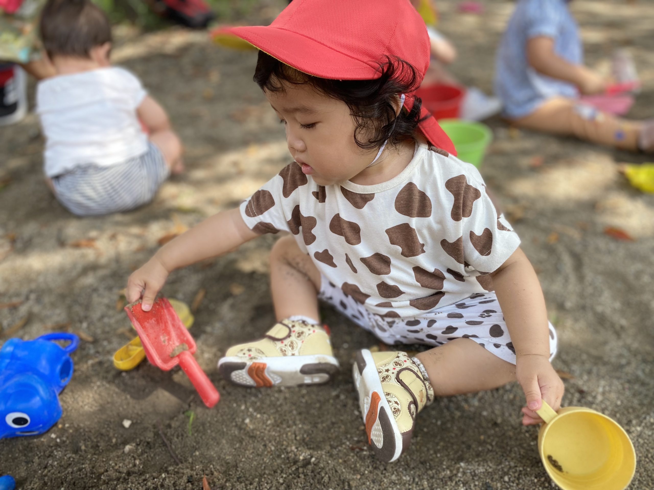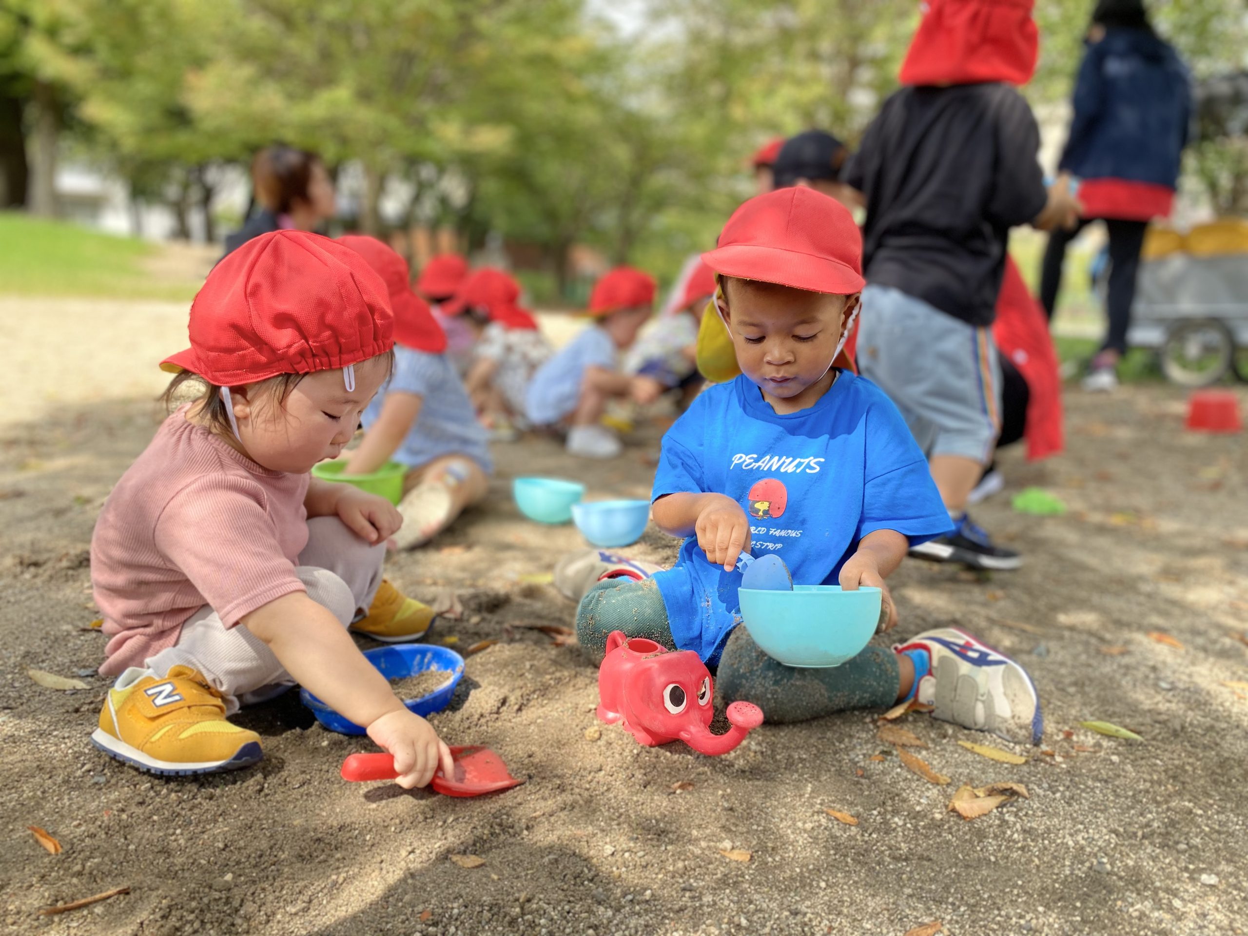 砂場遊びや、かけっこをして、お散歩を楽しんでいる子ども達です😄✨