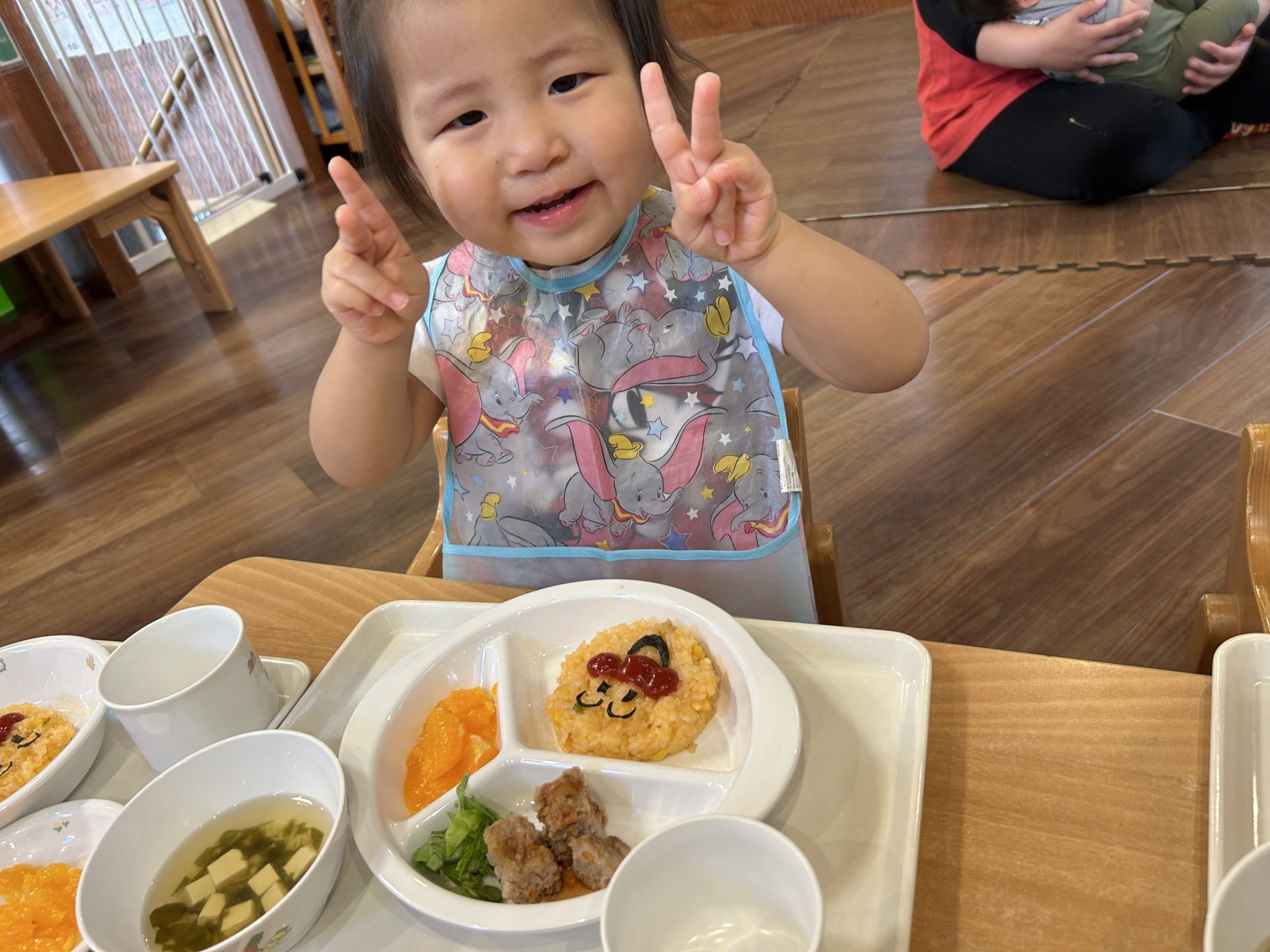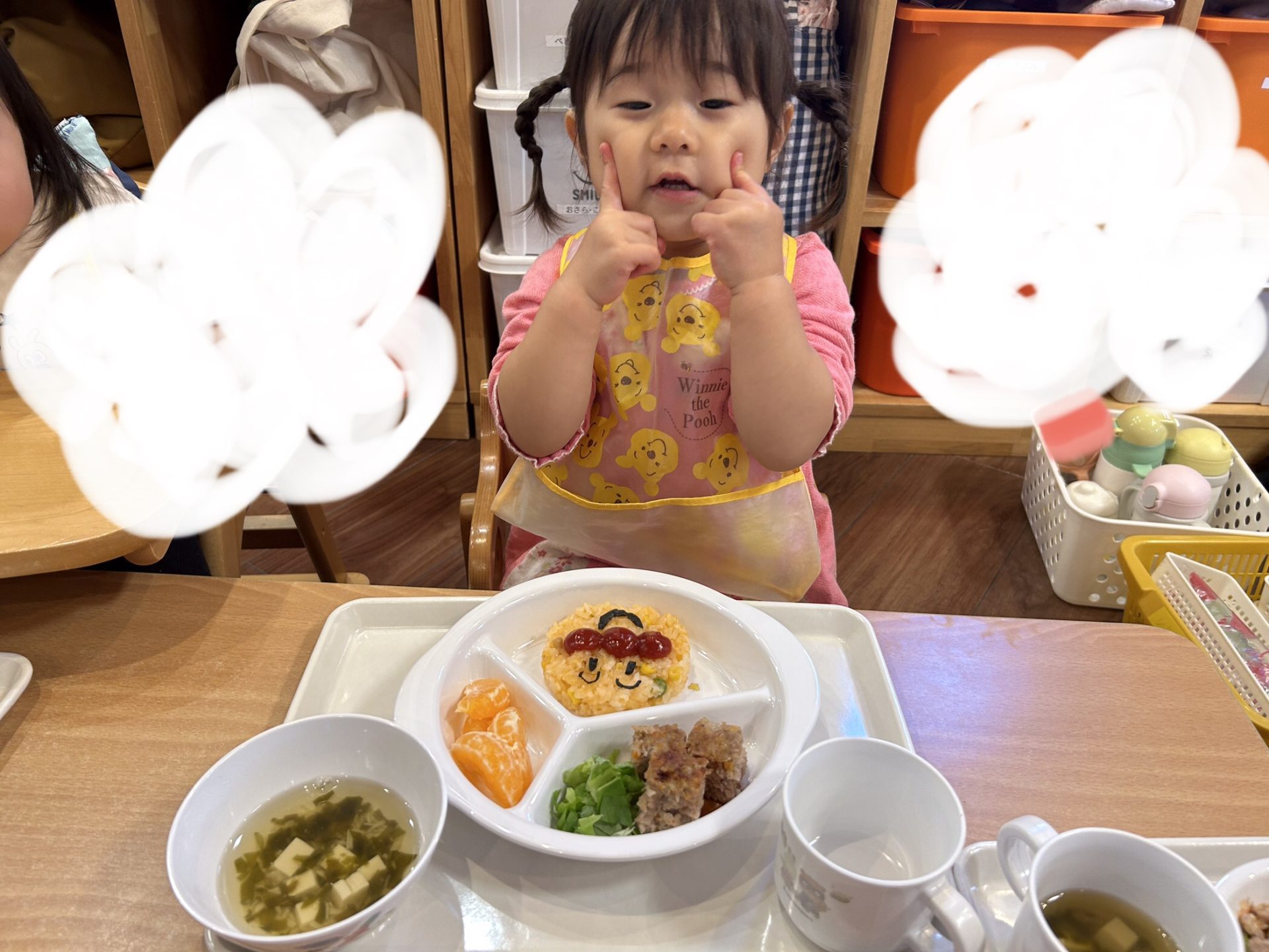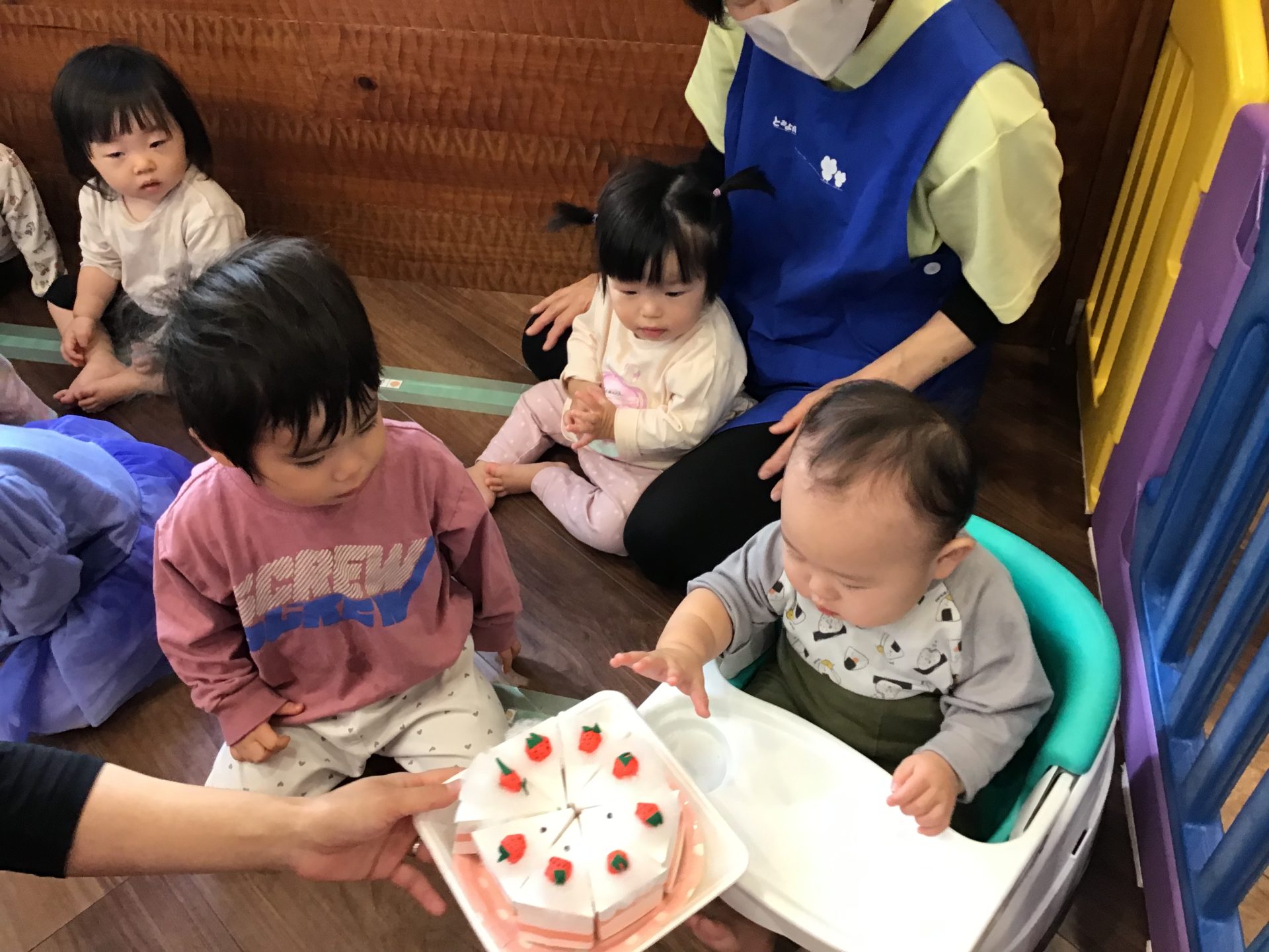 11月生まれのお誕生会では、お友達のインタビューのほか、ハッピーバースデーの歌でお祝いをしてもらうと、ニコニコ笑顔で喜んでいました💕出し物のパネルシアター、3匹のヤギのガラガラドンのお話しを最後まで集中して観ていました😊