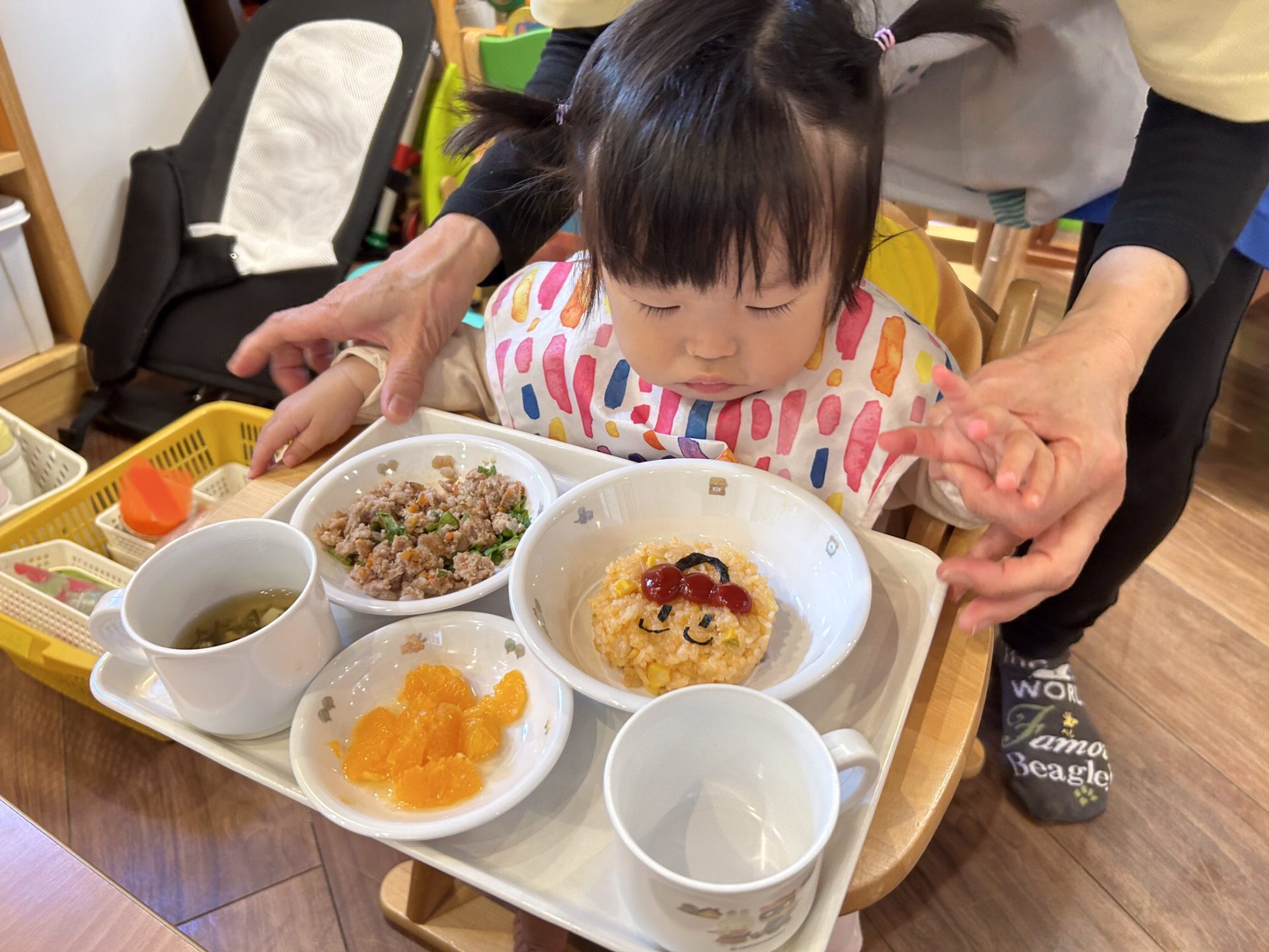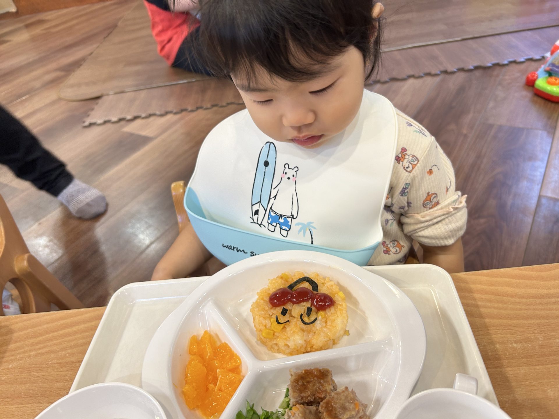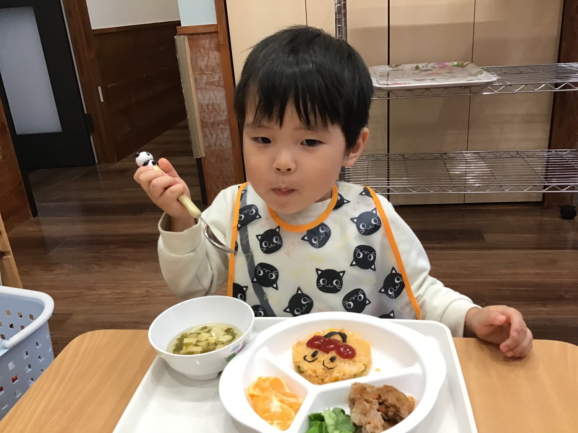 11月生まれのお誕生会では、お友達のインタビューのほか、ハッピーバースデーの歌でお祝いをしてもらうと、ニコニコ笑顔で喜んでいました💕出し物のパネルシアター、3匹のヤギのガラガラドンのお話しを最後まで集中して観ていました😊