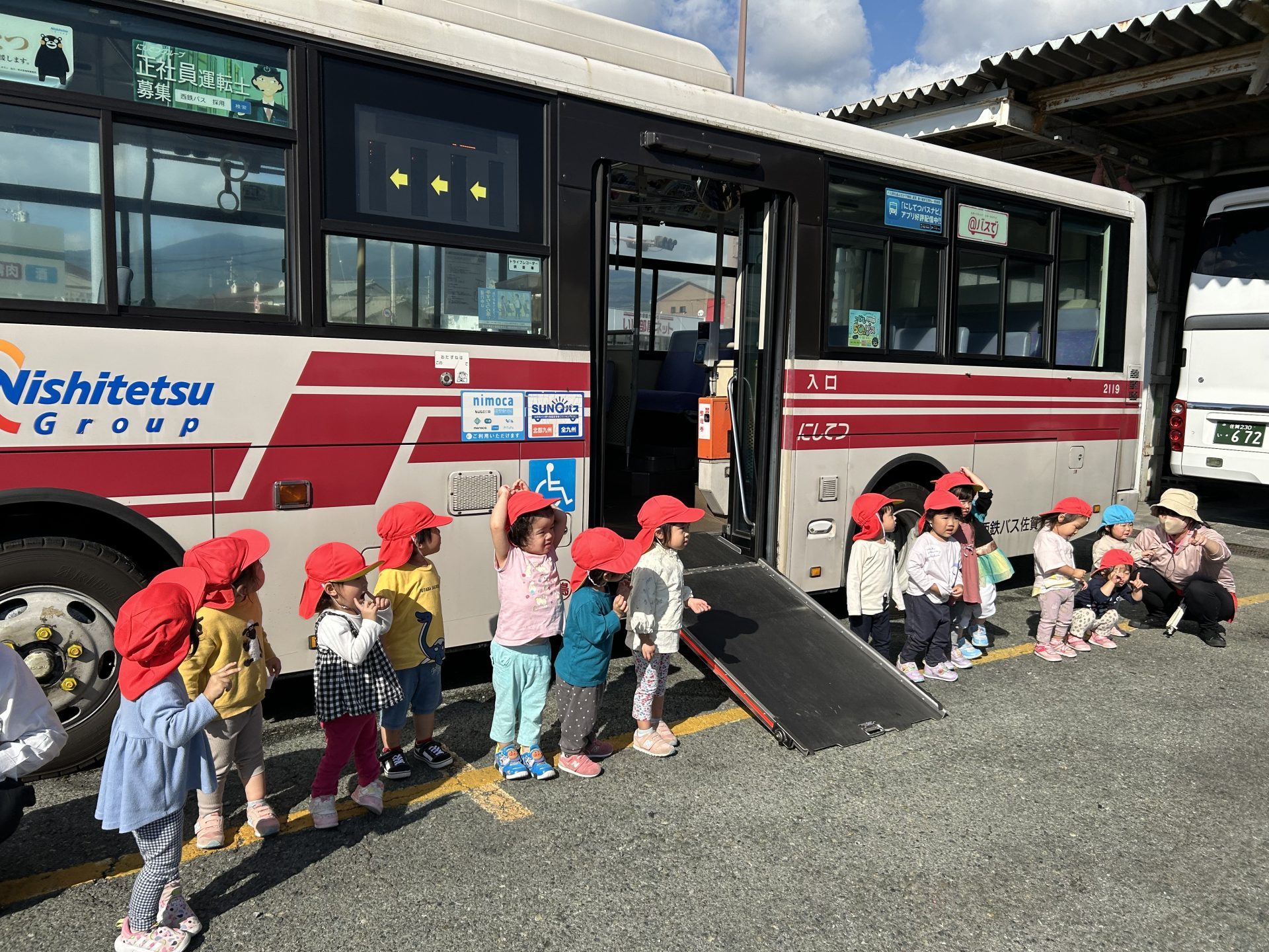 社会科見学は西鉄バスセンターに行きました🚌整理券を取ったり、降車ボタンを押したりと、思う存分楽しんだ後は、運転席に座らせてもらってニコニコの子どもたち😊そして、車内から洗車も体験しました💕とっても楽しく、貴重な時間となりました😊
