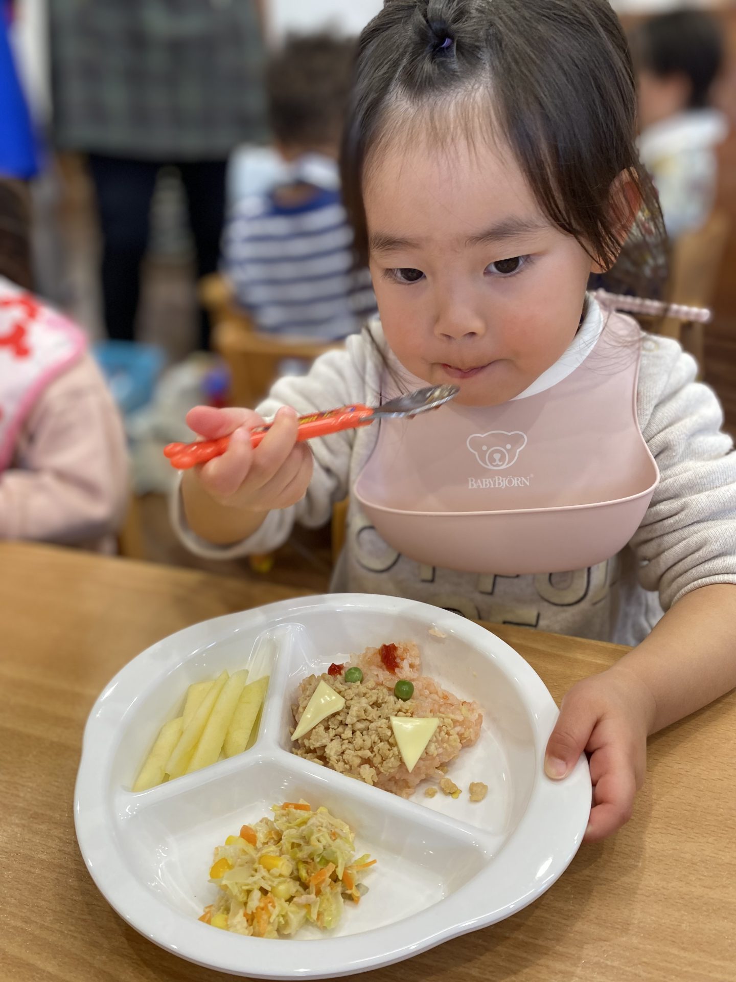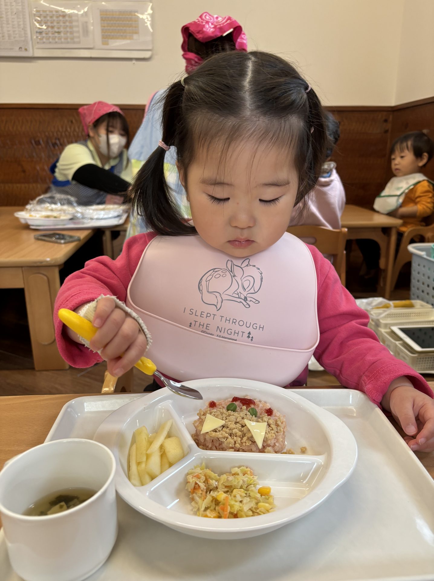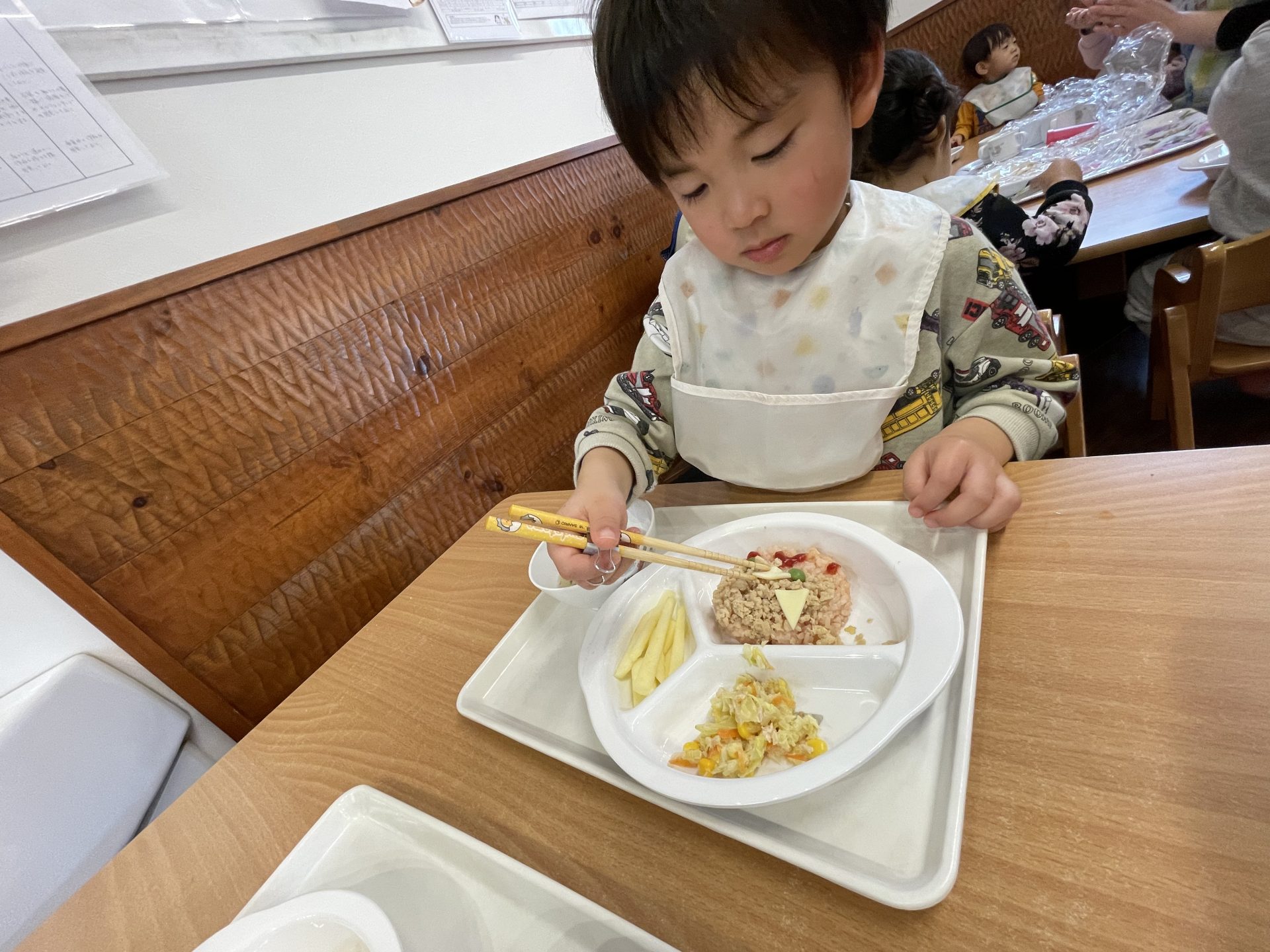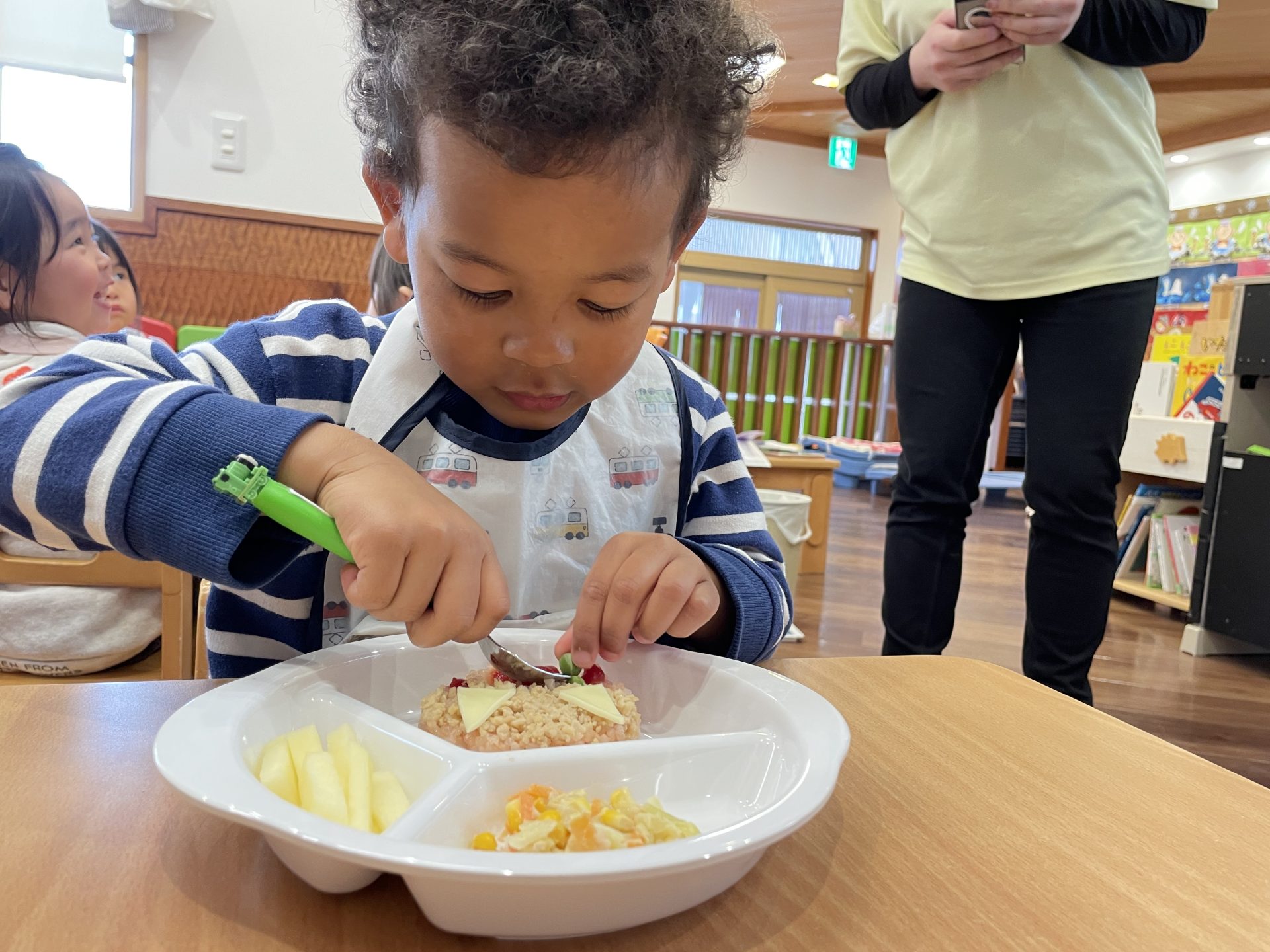 誕生日会メニューの鬼さんライスも喜んでモリモリ食べていました👹