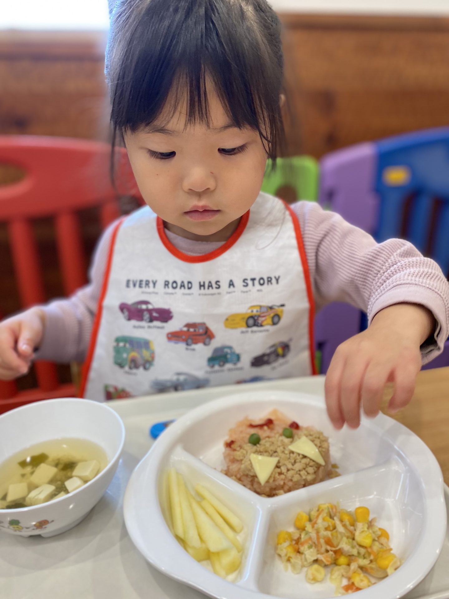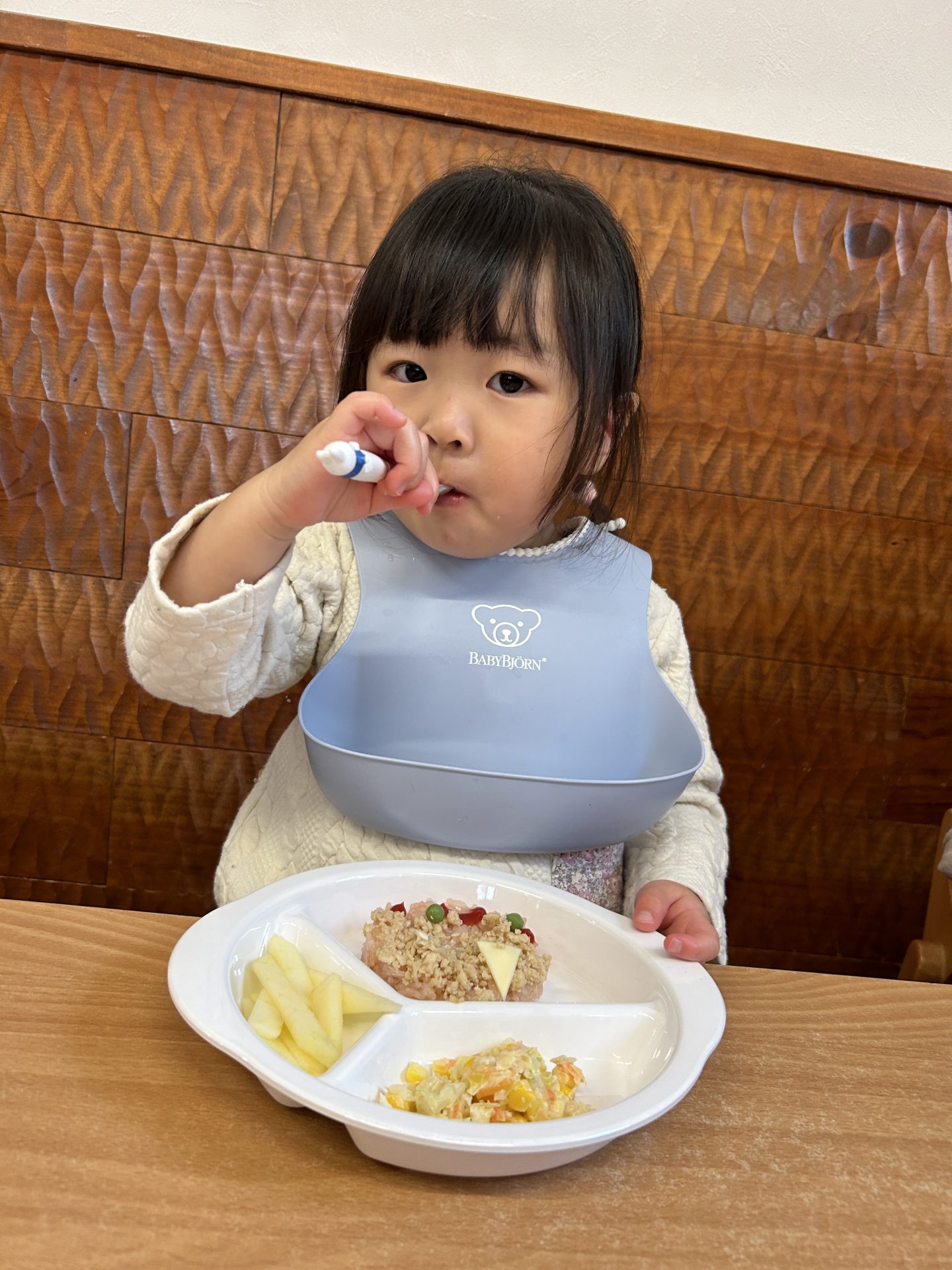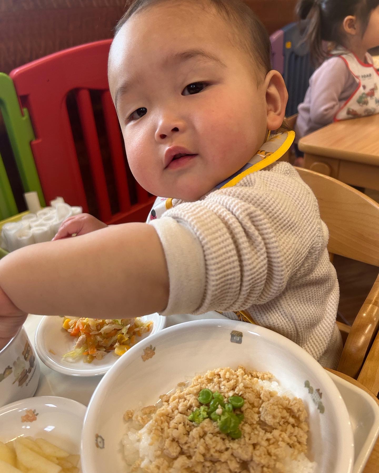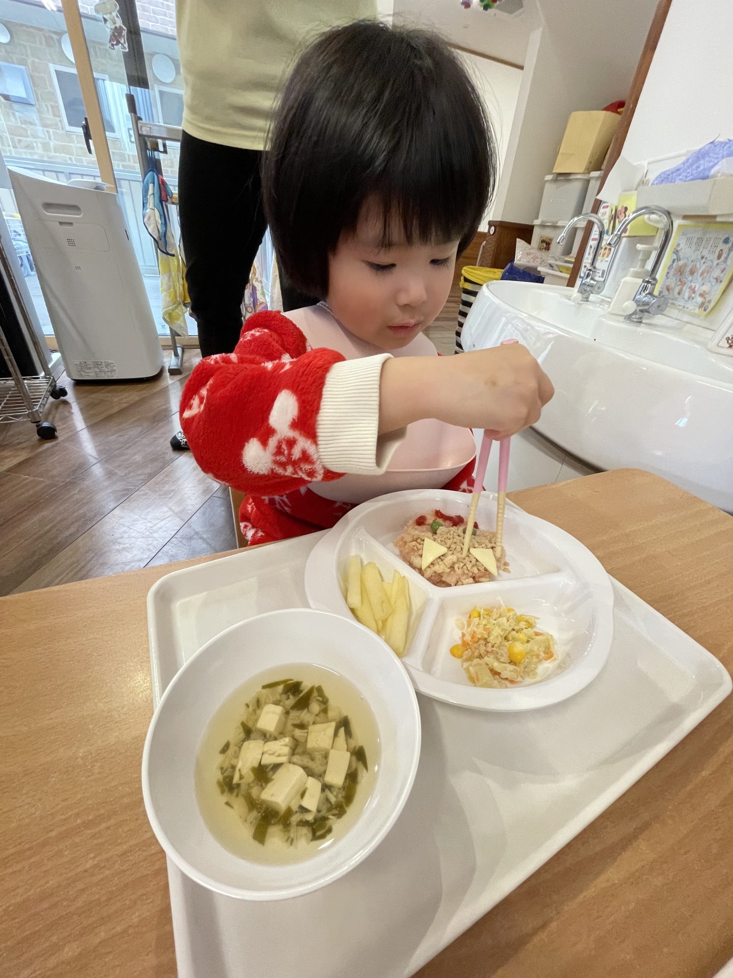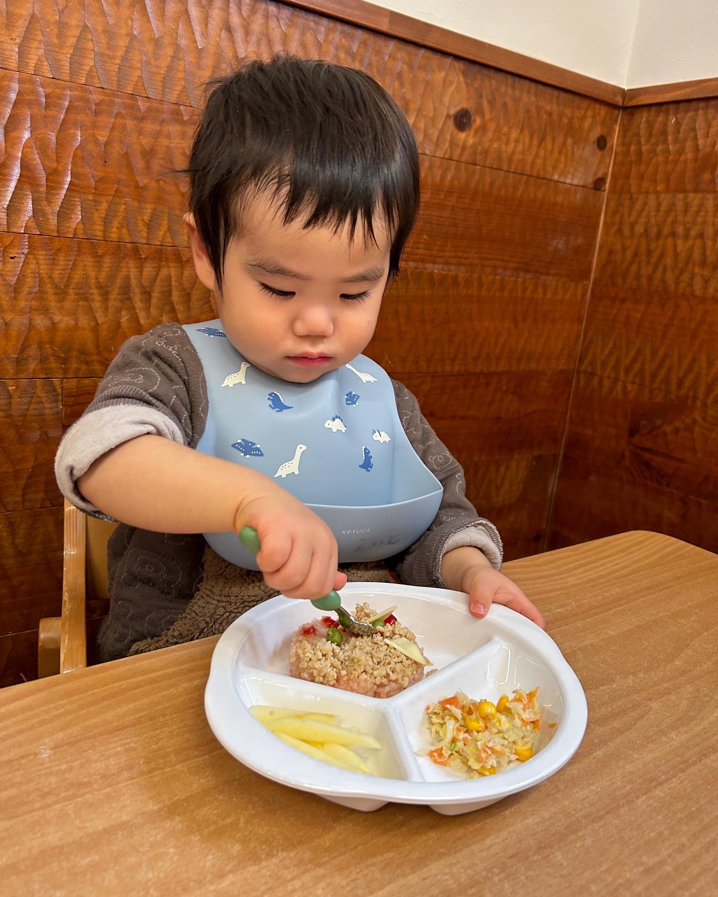 誕生日会メニューの鬼さんライスも喜んでモリモリ食べていました👹
