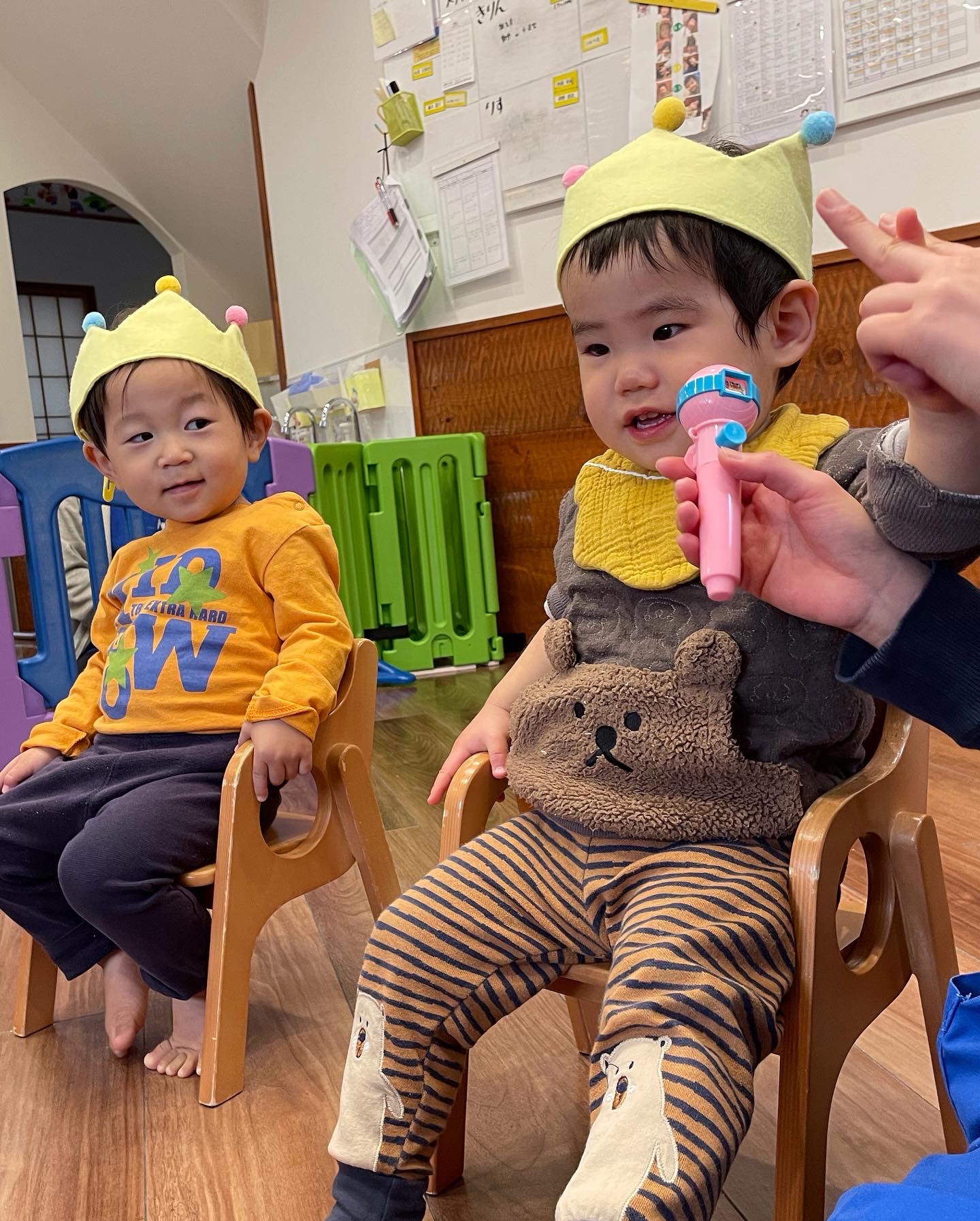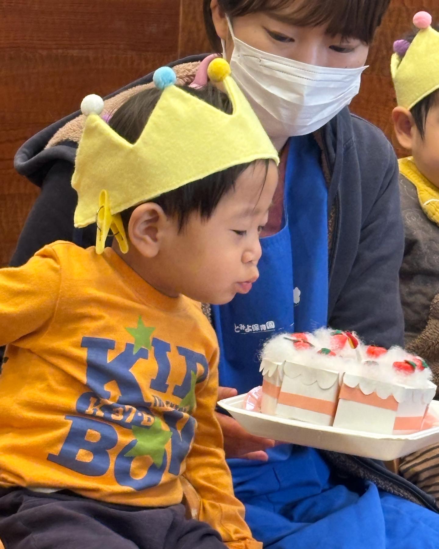 2月生まれの誕生会しました😊💕皆んなでハッピーバースデーを歌ってお祝いしましたよ🎉マイクを向けられてインタビューされると嬉しいのとちょっぴり恥ずかしいのが混ざった笑顔がとっても可愛かったですよ💕