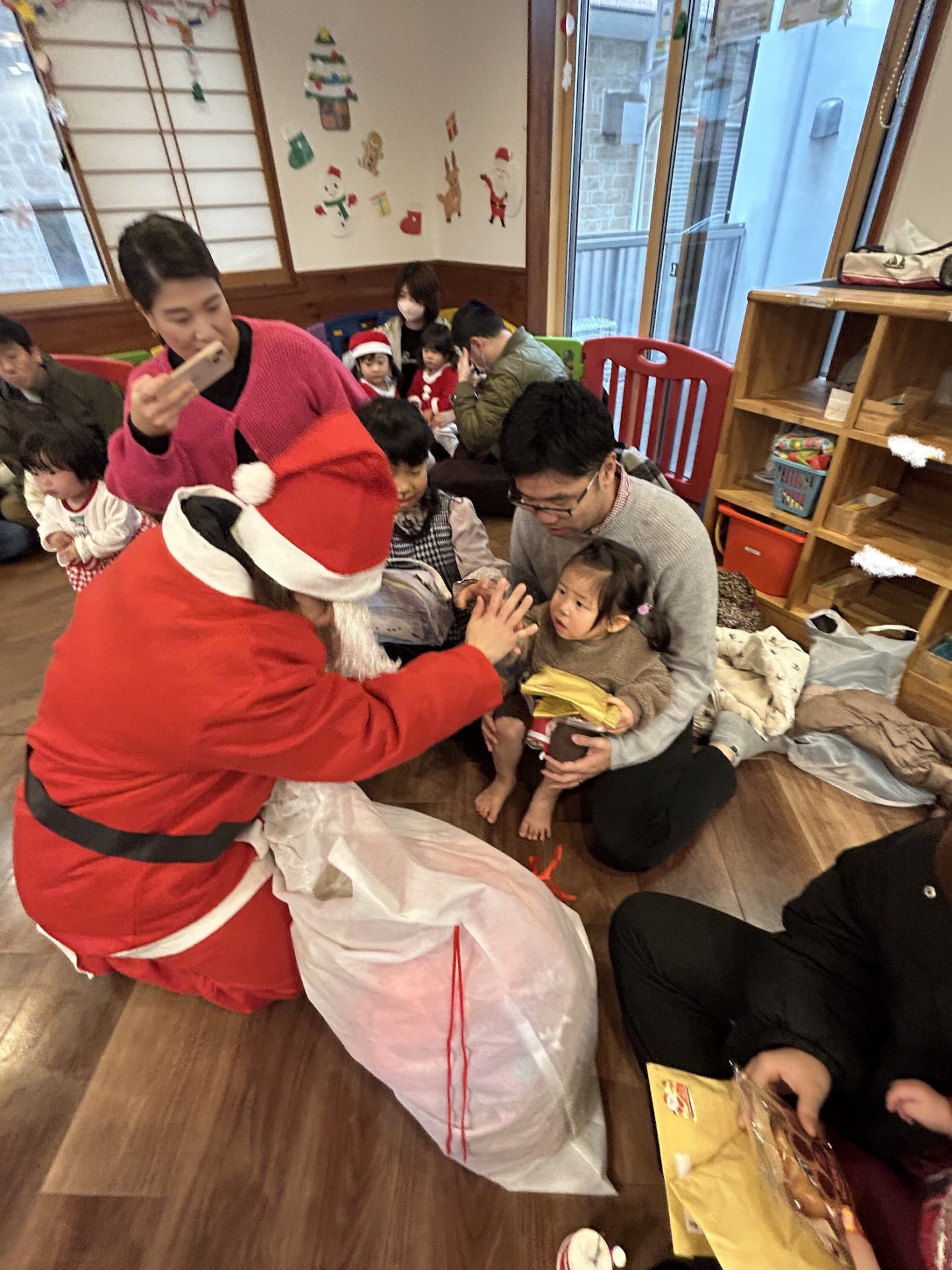 先週末はクリスマス会のご参加、ありがとうございました🎄音楽に合わせてノリノリで披露する子もいれば、緊張で固まってしまう子など様々な姿がある中で子ども達は、お家の方に観てもらって嬉しかったこと思います💕サンタクロースのハンドベル制作では、パーツは一緒でもみんな違った表情のお顔が出来ました🔔サンタさんの登場にビックリしながらも、プレゼントをもらうとニッコリ笑顔になっていました😊