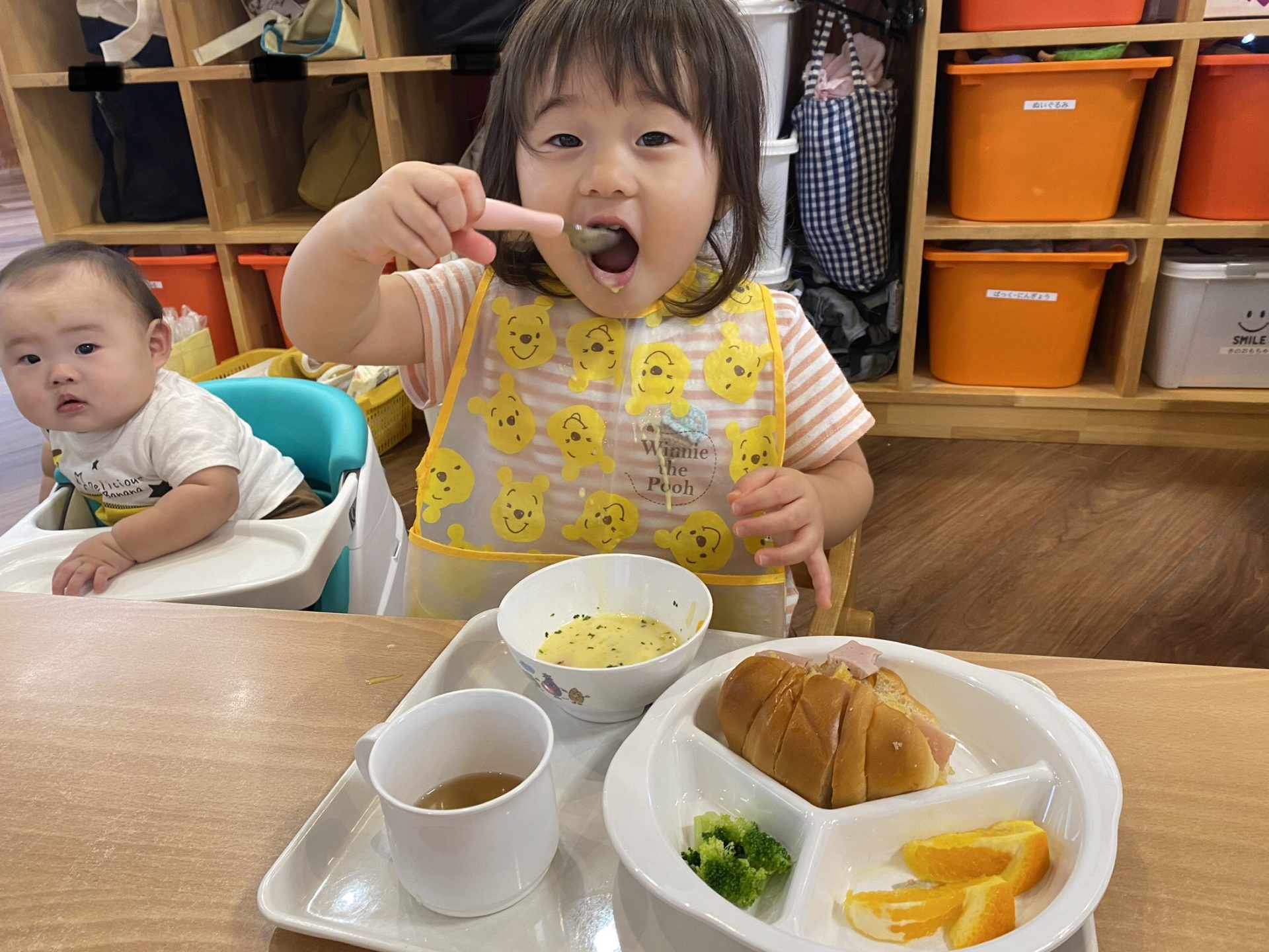 今週は10月生まれのお誕生会をしました🎂出し物に目を輝かせながら終始喜んで見ていました✨誕生会メニューのハロウィンランチも美味しかったね🎃