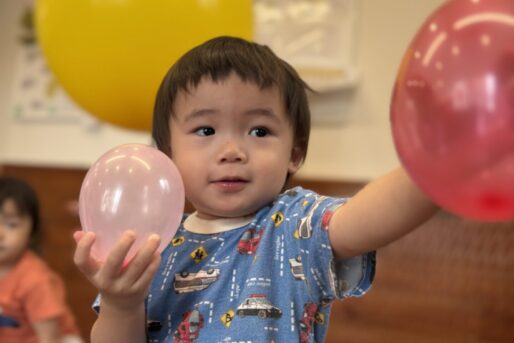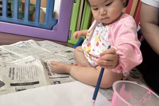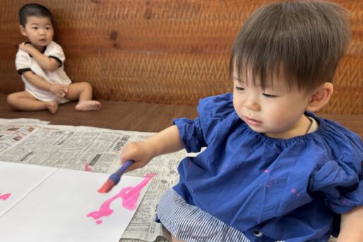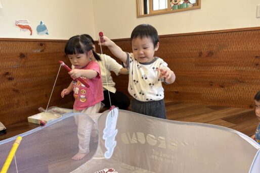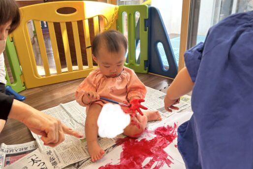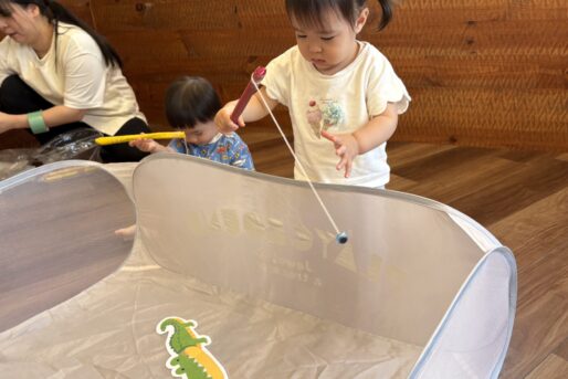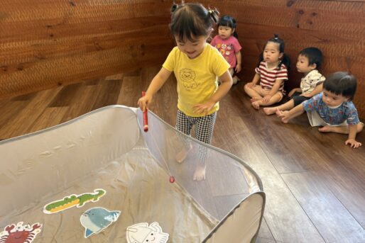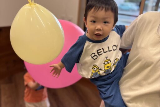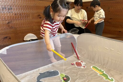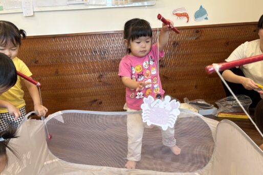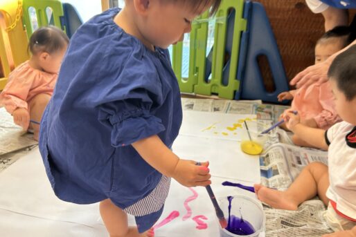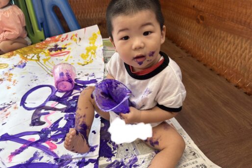 室内では絵の具でお絵かき、魚釣り遊び、マット遊び、特大風船等を楽しみました💕