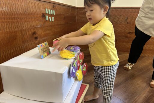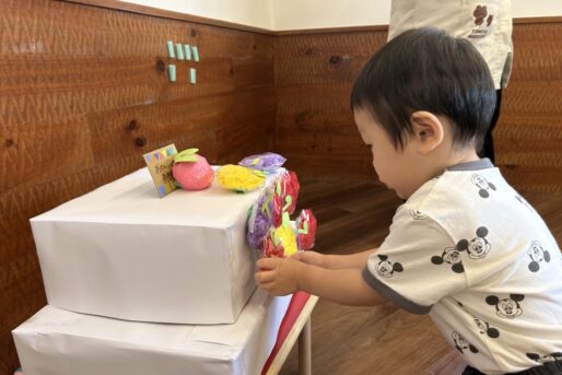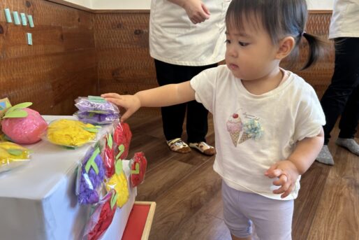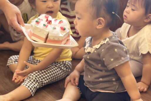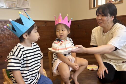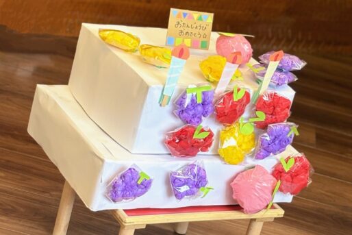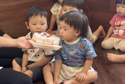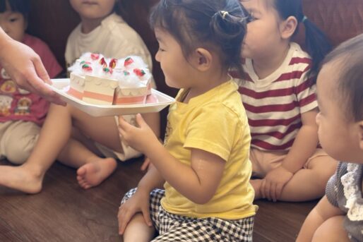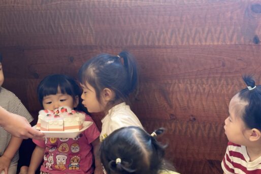 まだまだ日中は蒸暑いですが、朝晩は心地良い風を感じるようになってきました☺️今週は9月生まれの誕生会がありました🎂出し物の果物狩りでは、好きな果物を採り、特大ケーキに飾り付けしました🍓🍊🍎🍇