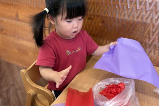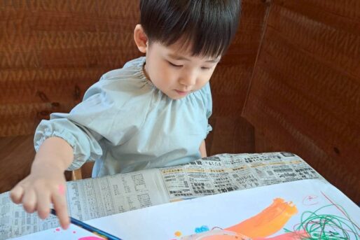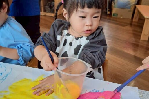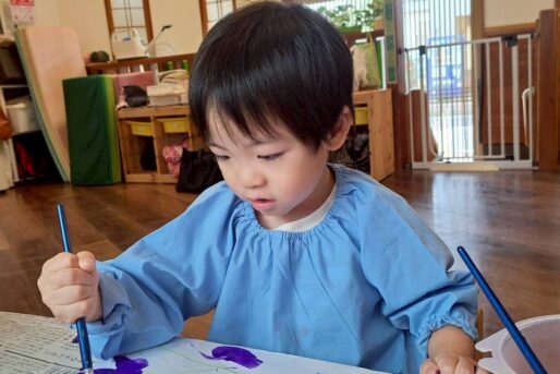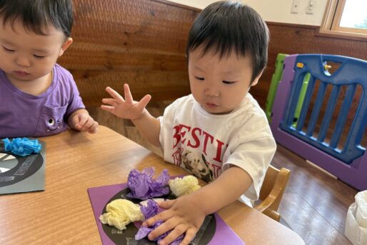 大きな紙に絵の具やクレヨンを使ってお絵かきを楽しんでいます🎨