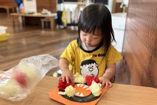 上手にお花紙を丸めて貼り付け、カラフルに仕上げています👻